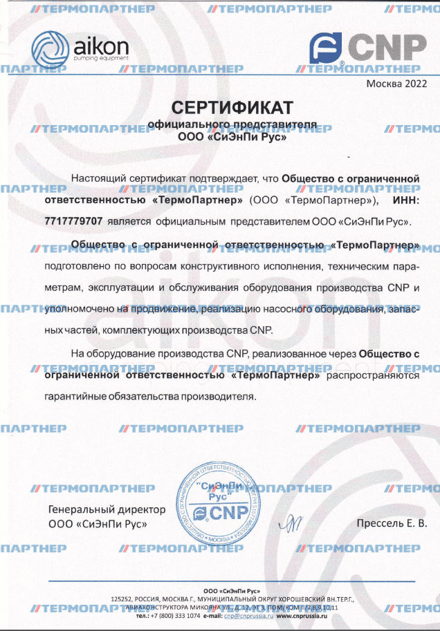 Внимание! Данная Цена носит информативный характер и не является публичной офертой. Для подтверждения Цены направьте запрос на почту: zakaz@termopartner.ru